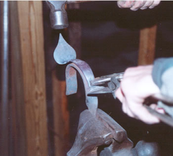 The bottom cusp is bent the same way, hot in the vise, using the hammer to upset the grip into the cusp.