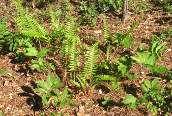 We still have logs in the the garden area, pines which had fallen years before. After cutting up three logs with the chainsaw in March, I hauled the logs away in April and mowed that spot. When spring came the barren expanse was filled with ferns and Solomon seals. Strangely, when I mowed the garden for the first time this year, most of the new growth was gone, eaten by deer or killed by the hot weather and direct sun.