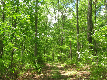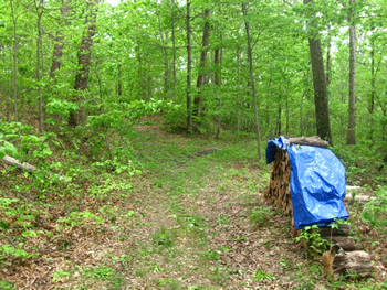 Everything is green now when a couple of months ago it was shades of tan and brown. This is a view down one of the roads in our woods.