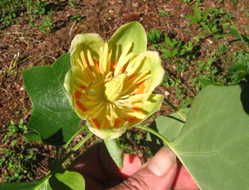 After a wind storm some poplar flowers were on the grown. It’s easy to see why they were called tulip poplars.