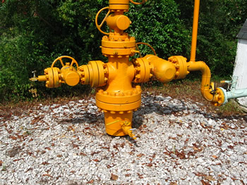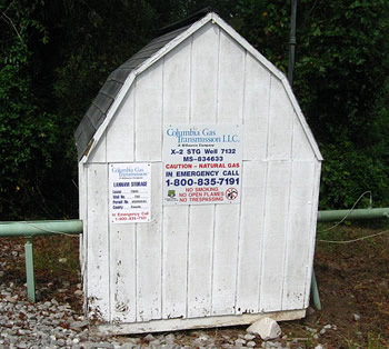 This storage well is off Route 622 close to Camp Virgil Tate. The brightly painted wellhead is typical of this operator.