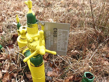 This operator's color scheme is purposeful. Valves are painted yellow, pipe is green.