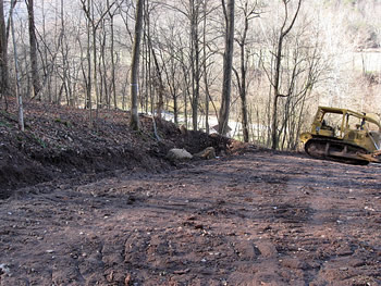 Constructing the site for drilling a well can be either relatively simple or extremely complex depending on the terrain. Most sites we've examined were cut into the side of a hill. The cut material is pushed over the side of the pad down the fill slope.