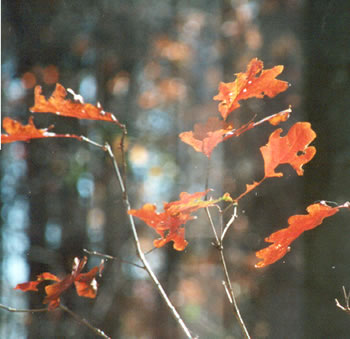 And this picture shows the luminous Oak leaves on a small sapling as seen from the House.
