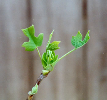Poplar leaves emerging from their buds.