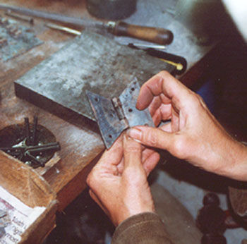 The hinge parts are filed and assembled at a special bench.