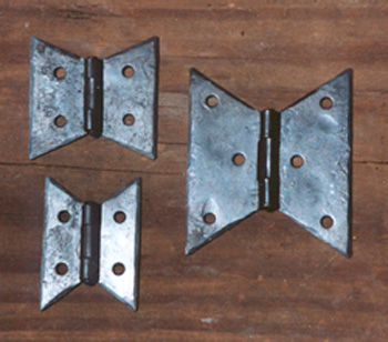 When the hinge is ready, a hot finish of beeswax and raw linseed oil is used. The hinge is examined when cool and sometimes has to be reheated, wire wheeled and refinished if there are scale pops. The scale is what gives the hinge its black finish when the oil and wax are applied. If scale is popped, that area will show as a shiny silver spot.