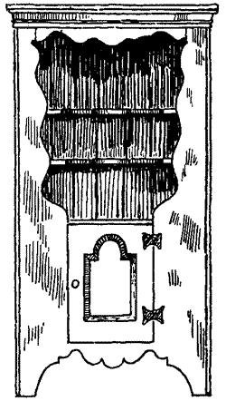 This is a drawing of an 18th century American corner cupboard that has a pair of butterfly hinges on the lower door.