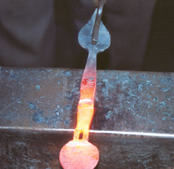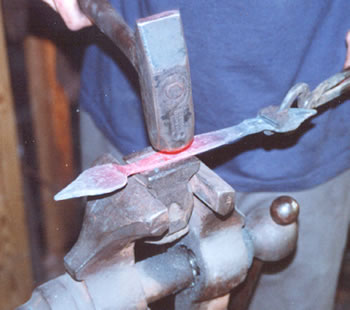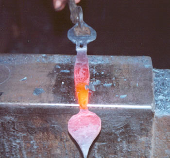After the slot is formed the bottom cusp is started in the same way as heats 5 through 7. The grip portion of the latch is forged next.