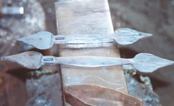 The top forging shows the bottom cusp started (at the end of heat 15). The bottom forging shows the latch almost finished at heat 23.