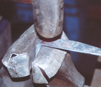 The bottom cusp is bent the same way, hot in the vise, using the hammer to upset the grip into the cusp.