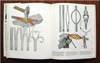 Amongst the books we have showing blacksmithing processes, the most beautiful is Otto Schmirler’s Werk und Werkzeug des Kunstschmeids (Tubingen, Austria: Verlag Ernst Wasmuth, 1981). Schmirler’s drawings illustrate a number of processes and tools used for ornamental work.