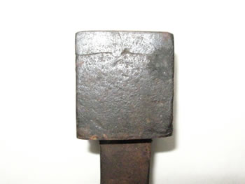 This is an old hardy tool that Molly uses. The maker forge welded a piece of steel to the wrought iron body. The seam is visible in the photograph. Early trades’ tools were often made of wrought iron with pieces of high carbon steel forge welded onto it for cutting or other purposes. Today, we’d tend to make the whole tool out of high carbon steel. In the past the body of an anvil was wrought iron with a relatively thin piece of tool steel plate forge welded to it for the working surface. Woodworkers’ tools like chisels, axes, hammers, plane irons, and so forth were made this way with just a small piece of tool steel for the working surface or cutting edge.