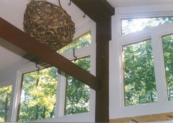 These are the upper tier of windows on the south side. During the summer the trees provide lots of shade, during the winter when the leaves have fallen we get nice solar gain. There are hooks on the beams to hang things from.