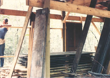 The south door has been hung. Four large doors open on two bays facing east. Those were hung the following year.