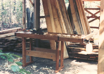 This is one of Georges workbenches. This one was made to store in the Shack so we could use it when we visited. The top lifts off the legs and both parts of the bench are fairly manageable to move about.