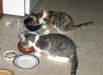 Mama Cat and Peach Blossom, the two feral cats living in the yard, were captured in early autumn 2010. Peach Blossom is Grey and Blondie's sister.