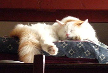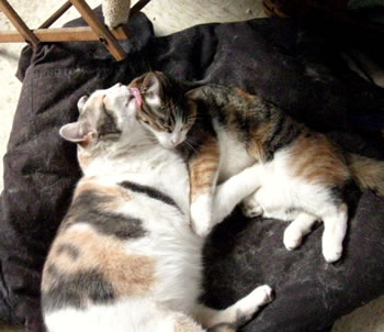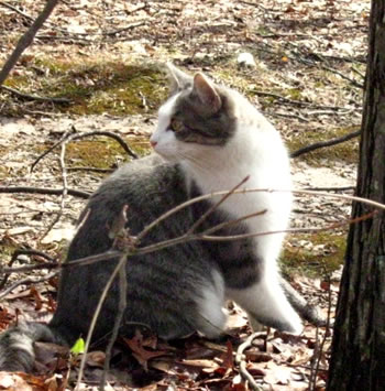 In May 2009 Kitty Boy appeared. He hid out in our yard until we were able to entice him inside. Bobo already had made friends and convinced Kitty Boy we were okay.
