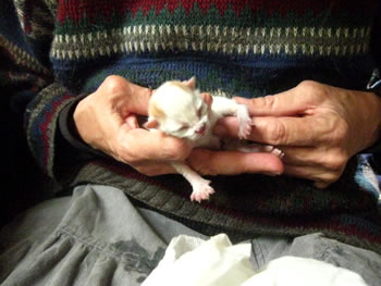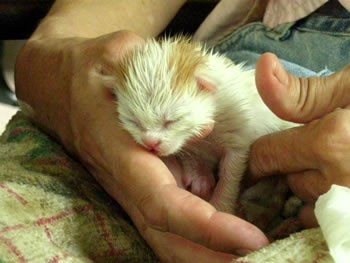 5/29 -- When kittens are born their ears are folded closed. Blondie's ears have become erect now.