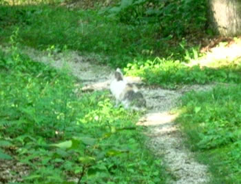 The momma cat is terrified of people and even though we're feeding her, won't let us come close. This not very sharp photo is of her in the yard.