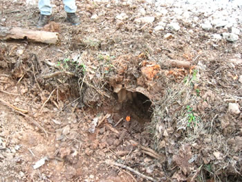 When the road was graded and partially graveled in September 2008, the inlet end of a culvert was almost entirely blocked.