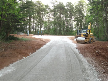 The road contractor used a roller to compact the clay road surface before laying down gravel. That was also compacted and then another finer layer of gravel was compacted onto that.