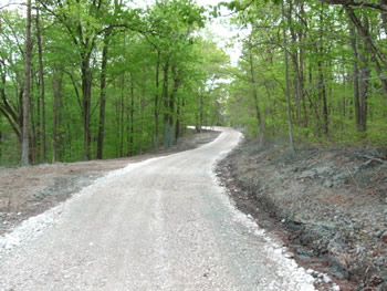 The contractor for the road work graded the road, created ditches and graveled the road.
