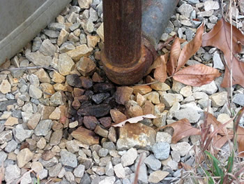 It's hard to tell if what we're seeing is rust or signs of a leak. This is a joint for the inlet pipe to the tank.
