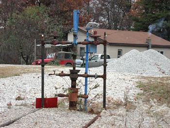 This well is on Harmon's Creek Road, across from a house. An email to us, after the photos, from the property owner (the couple lives in Florida) describes the well's drilling.