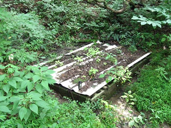 It's possible, in spite of this, that the operator carried out a typical land application of liquid waste on the hillside above this water cistern. The solid pit waste was buried on site.
