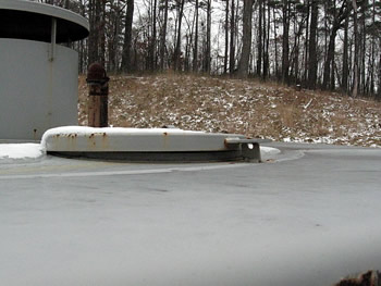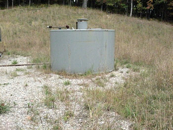 The 50-barrel steel tank doesn't have the required secondary containment dike. A maintenance issue is the lack of a lock for the tank's trap door.