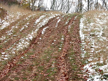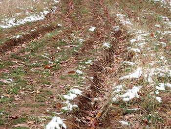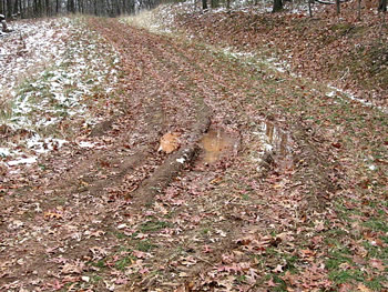 The access road was severely rutted. Two waterbars were damaged and ineffectual.
