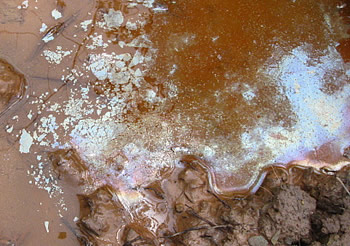 What looks like an oily sheen on the puddle is a type of bacteria.