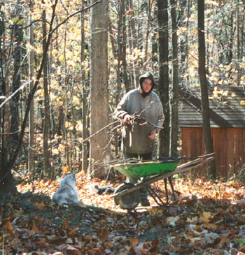 Because of the danger of forest fires, all the leaves that fall in our yard have to be removed. We run the lawn mower several times a week (in the summer we use it only every two weeks or so for the grass) which chops up the leaves. We have to rake leaves from around the buildings and haul them off to various large piles that start to form. And we have to run our leaf blower to help keep the firebreaks clear.